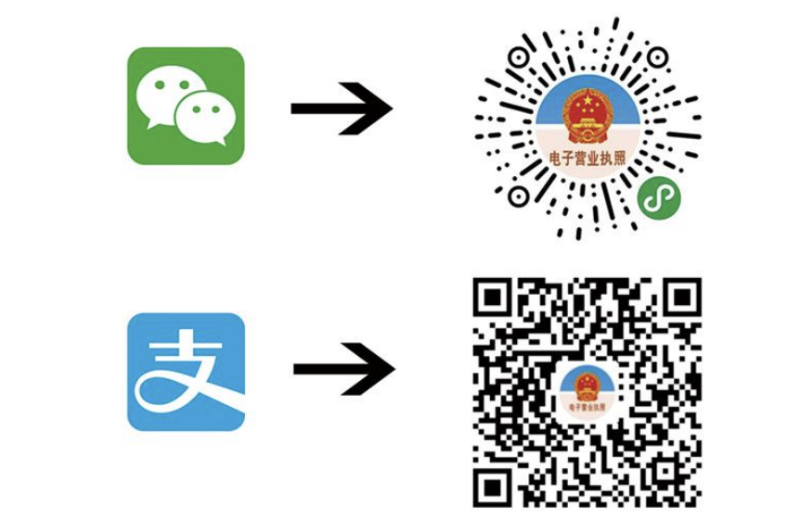 第1步,法定代表人通过微信或支付宝扫描以下二维码打开电子营业执照小程序,按照提示下载电子营业执照。