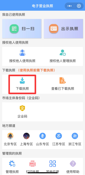 1.电子营业执照下载