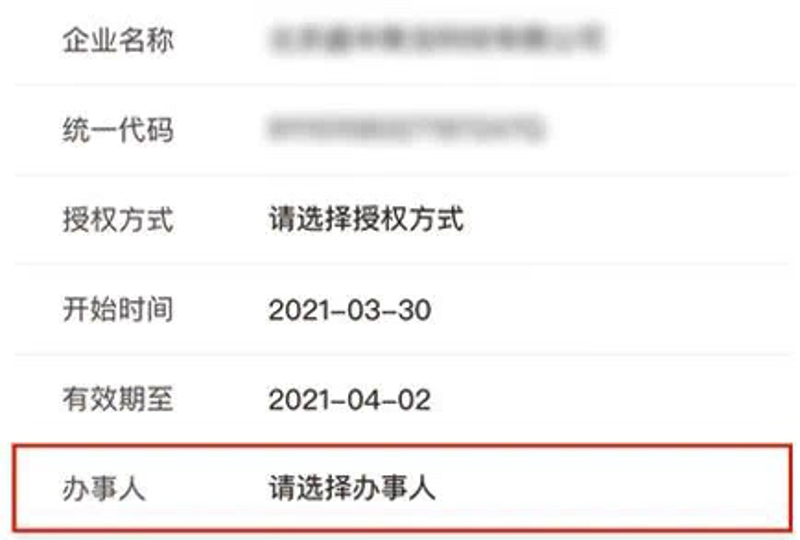 第3步,点击右下角“新增授权”按钮,点击“办事人”。