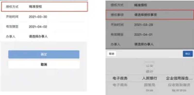 第5步,选择授权方式为“全业务授权”或“精准授权”。若为“精准授权”,选择授权事项为“电子政务-人民银行-企业信用报告查询”。授权期限默认为3天,可自行调整。